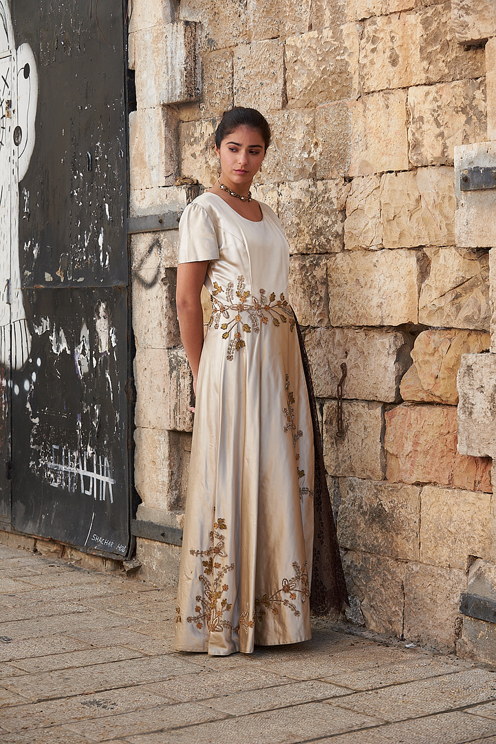 - Swiss embroidery with real silver and gold applications