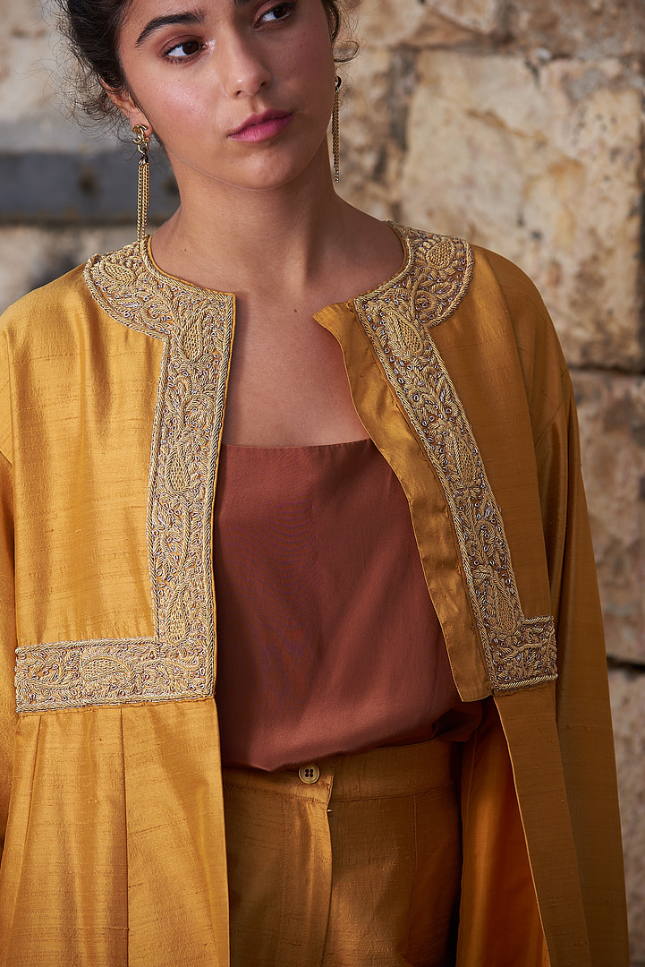 Whether you’re feeling bold or delicate and romantic, this eye-catching India tunic from Grace Kelly’s vintage wardrobe will make any occasion special. Featuring vibrant golden hues and delicate embroidery along the neckline, you’ll feel like a star in this one-of-a-kind piece. Don’t miss out on its timeless beauty that will never go out of style!