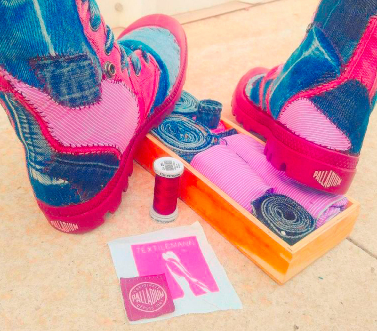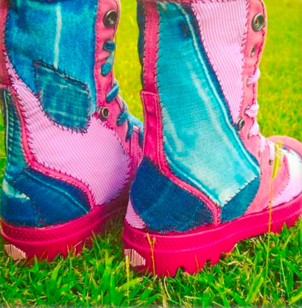 Stylish & sustainable – uniquely crafted patchwork upcycled boots with a palladium outsole