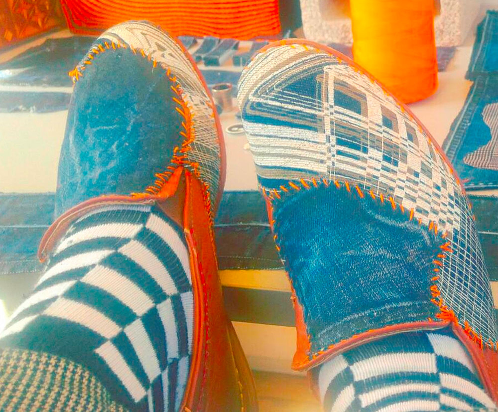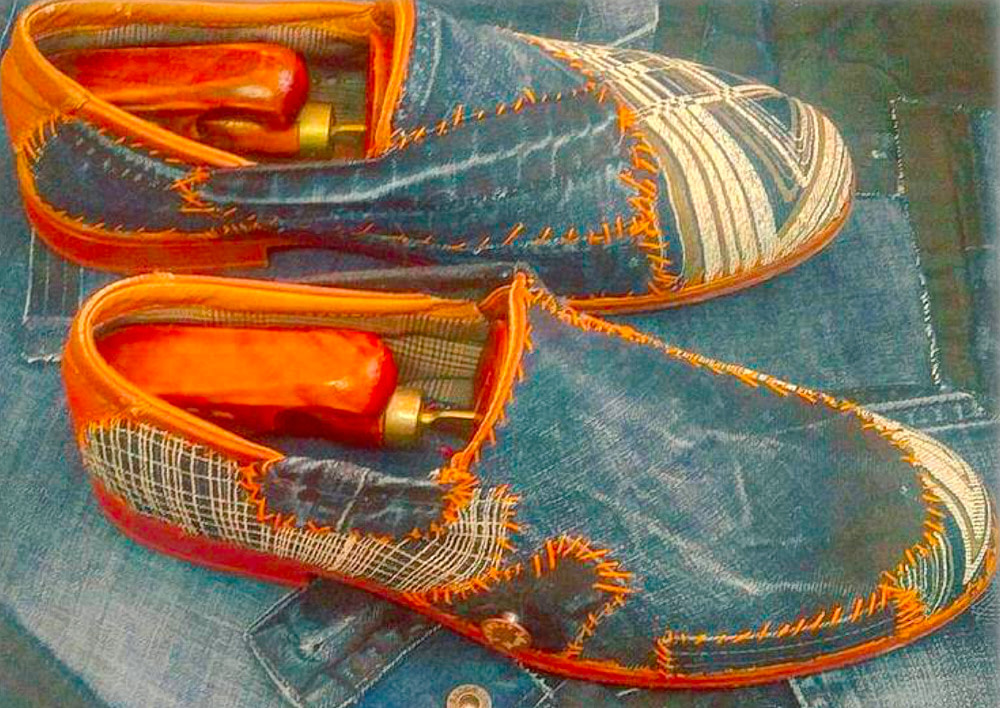 In 2016, Shay had the chance to create his own collection of Oxford shoes for a residency with Comme Il Faut at the Yafa port. This limited edition line included three pairs of leather-based upcycled oxfords that made use of a unique combination of hand sewing, machine knitting, natural cotton fabrics and geometric prints applied over jeans. The result is an elegant but bold look that manages to convey both organic and geometric patterns in one shoe.