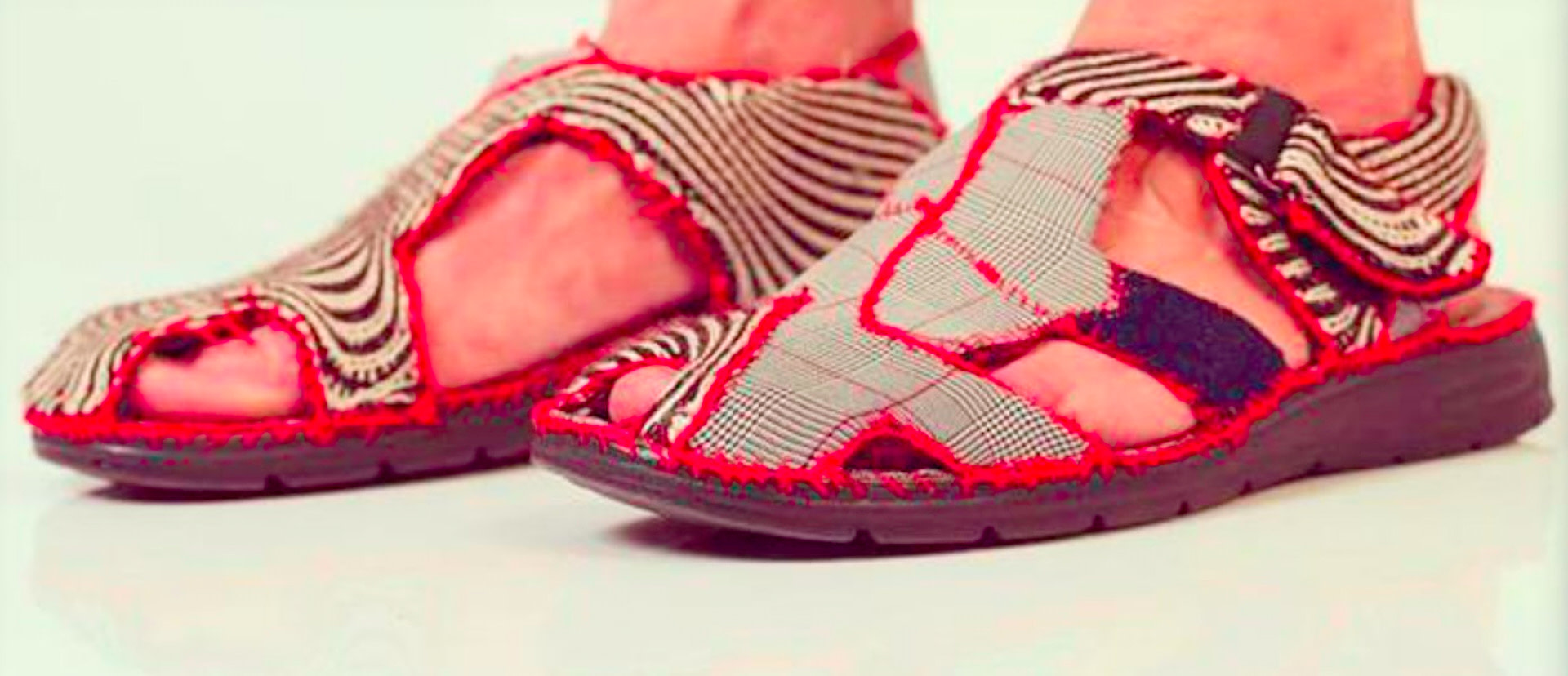 And some of them feature printed fabric. This stunning fabric is not only used to create the sandals, but also optional matching pants that complete the look. The joining technique used for the sandals is not only functional, but also adds an element of beauty to the design.