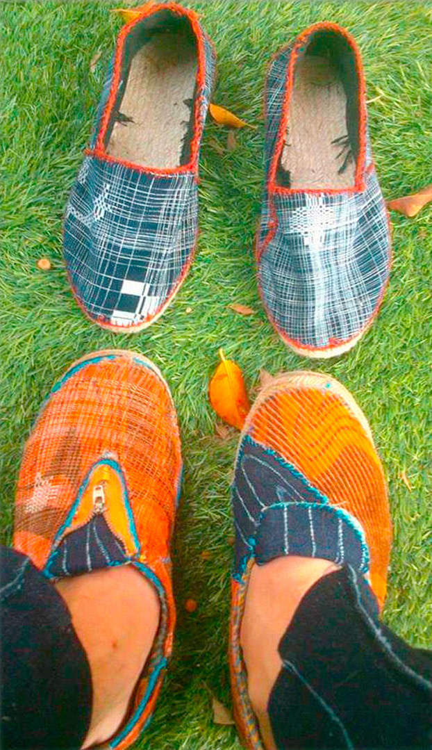 Each pair of shoes features a body made from upcycled fabric, which means that we have repurposed high-quality materials that might otherwise have gone to waste. This not only reduces the amount of waste that ends up in landfills but also helps to conserve the resources that would have been used to create new fabric.